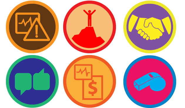 Color can provide unity and coherence in the design of your badges. Whether you choose an earthy palette, a high-contrast high-saturation scheme, or more subdued and simple tones, you should have a plan and a purpose in your color choices.